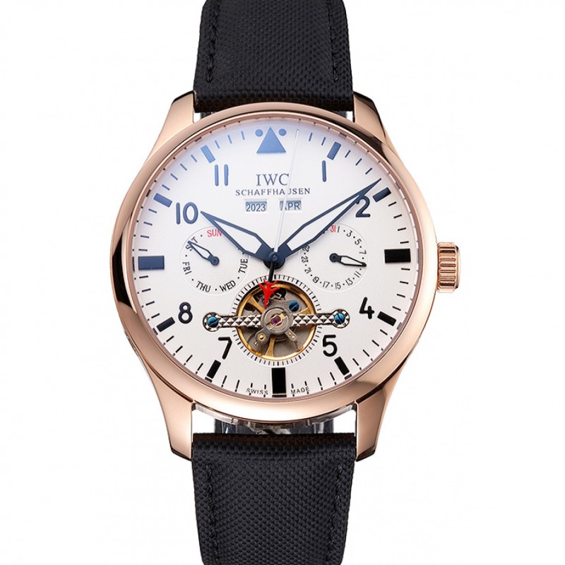 IWC Pilot Tourbillon White Dial Rose Gold Case Black Textile Strap Replica Watches